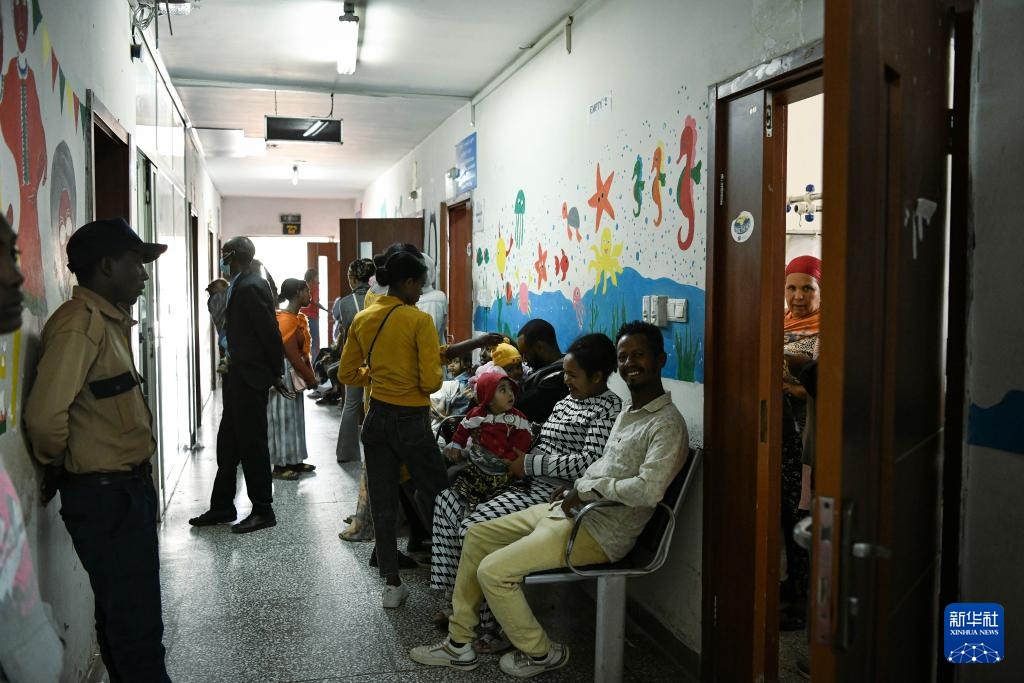 2月14日,人们在位于埃塞俄比亚首都亚的斯亚贝巴的蒂鲁内什-北京医院内候诊。新华社记者 韩旭 摄